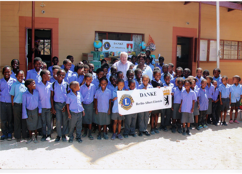Der Lions-Club unterstützt das Projekt „Namibia-Hilfe“ des Lions-Freunds Wolfgang Fiedler, der sich mit großem Engagement um die Einrichtung und Ausstattung von sogenannten "Farmschulen" sowie einer Schule für Blinde kümmert.